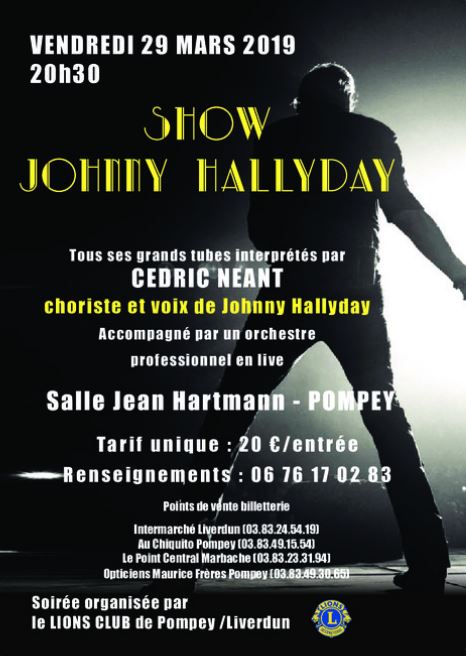 Le Lions club de Pompey Liverdun organise un Show Johnny Hallyday.