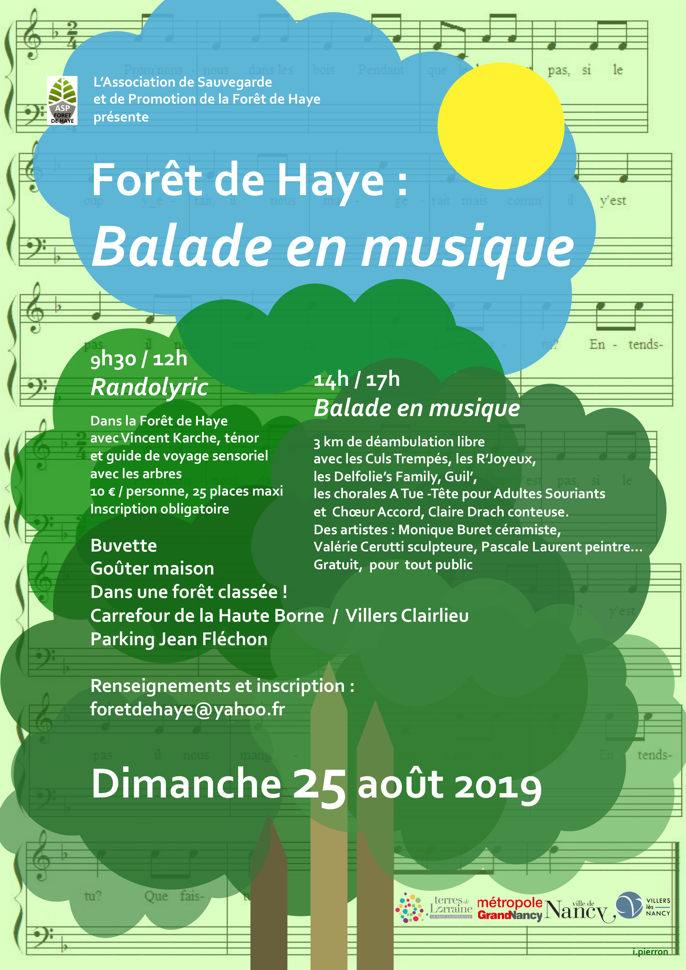 L’Association de Sauvegarde et de Promotion de la Forêt de Haye vous invite à une « balade en musique», le dimanche 25 août 2019 au carrefour de la Haute borne, à la sortie de Villers Clairlieu.