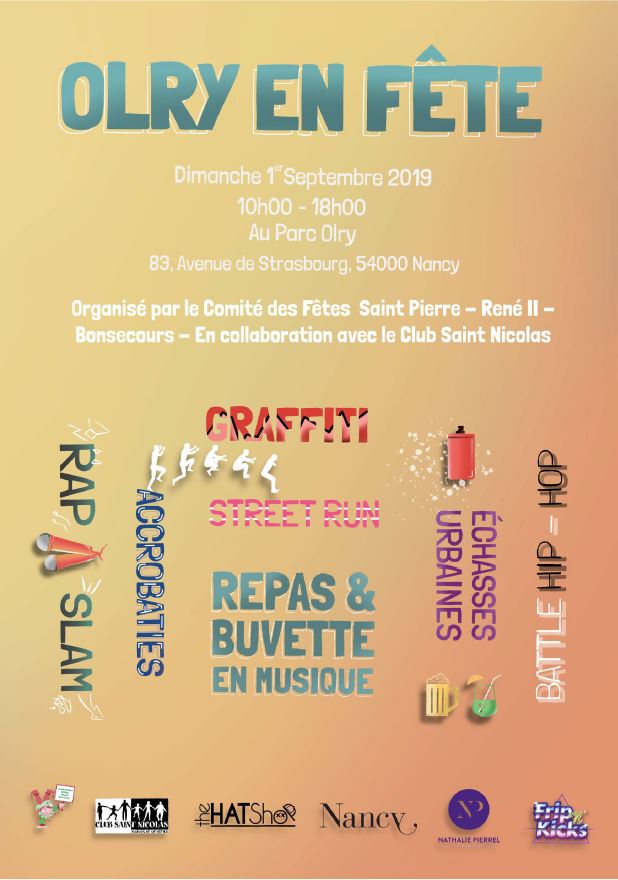 Le Comité des Fêtes Saint Pierre – René II – Bonsecours, organise la fête de quartier, « Olry en Fête », en partenariat avec le Club Saint Nicolas le Dimanche 1er septembre de 10h à 18h au parc Olry, à Nancy.