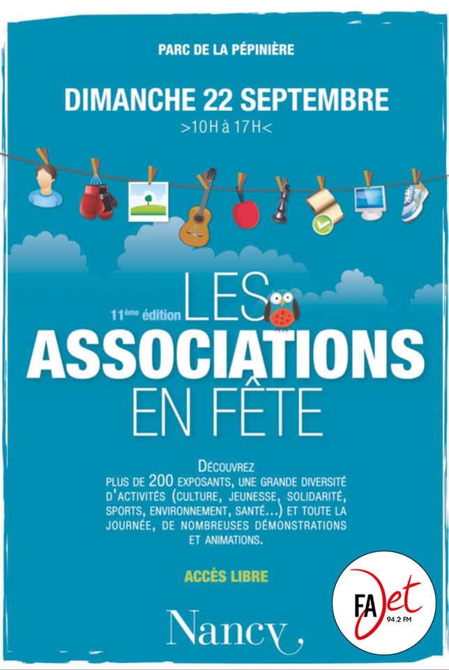 Ce dimanche 22 septembre 2019 a lieu au Parc de la Pépinière à Nancy la 11e édition de la Fête des Associations !