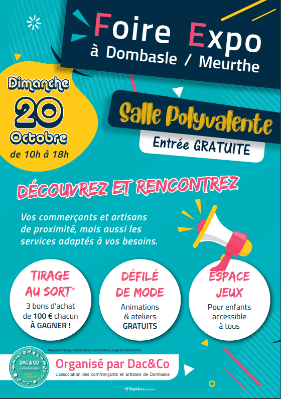 Dac&Co l’association des commerçants artisans de Dombasle-sur-Meurthe, organise une foire expo dimanche 20 octobre 2019.