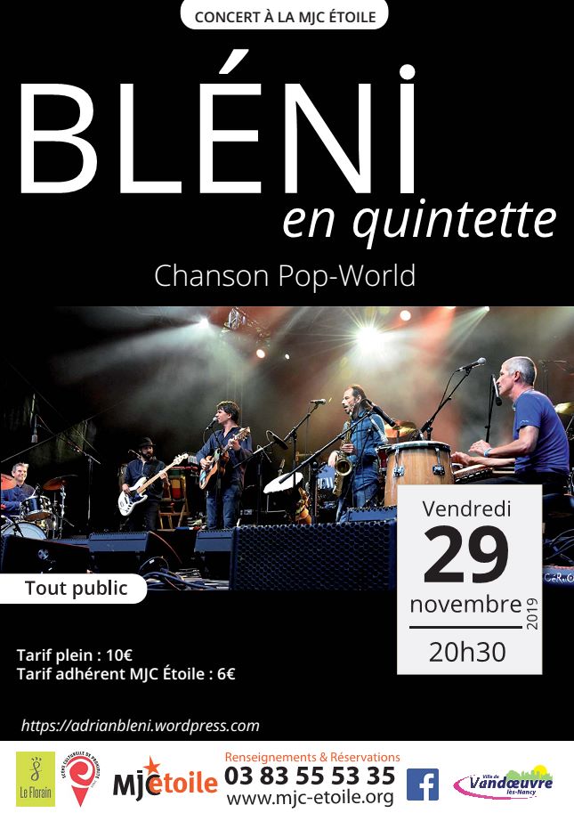 La mjc Etoile présente un concert de Bléni en quintette le vendredi 29 novembre 2019.