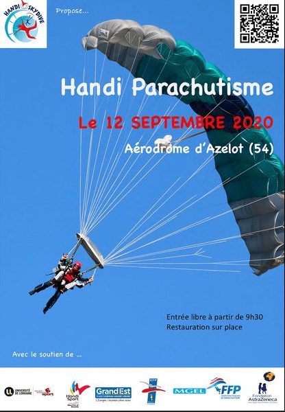 L’association Handi’skydive organise une journée découverte du parachutisme en Tandem (personne valide et personne en situation de handicap) le 12 septembre 2020 sur l’aérodrome d’Azelot.
