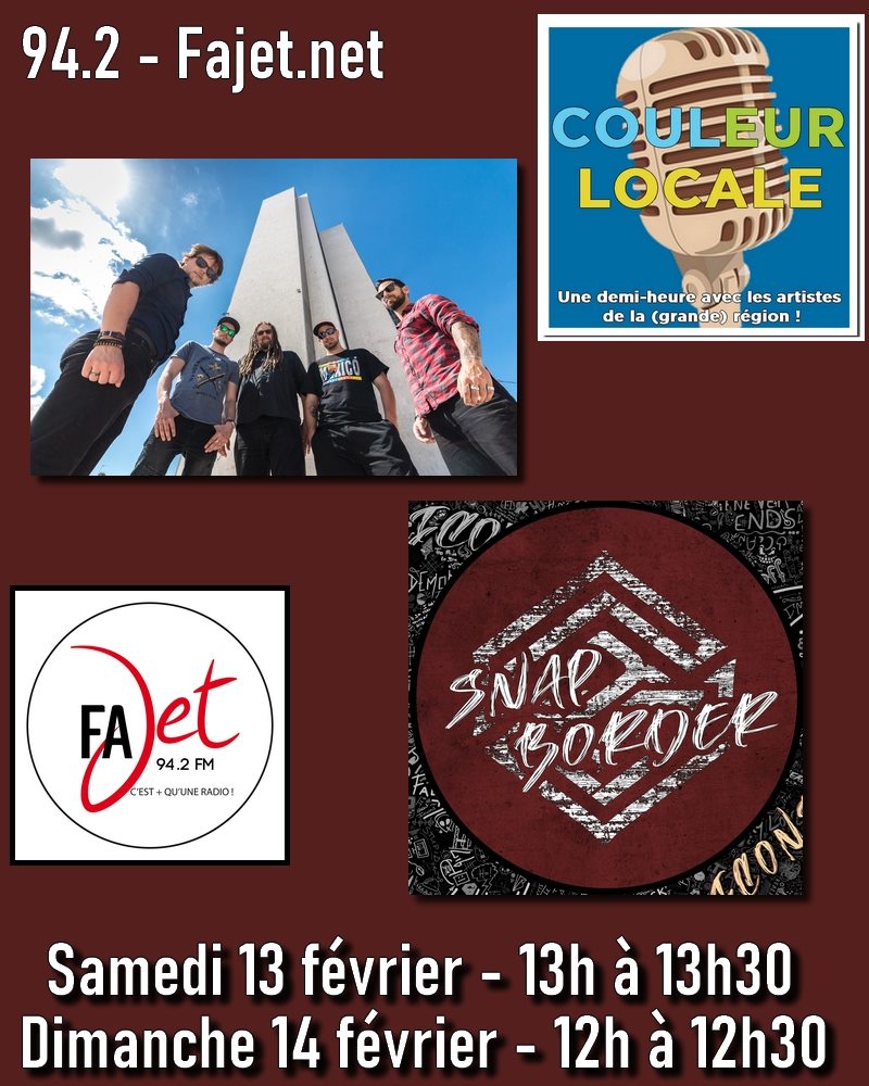 Couleur locale Couleur Locale – avec Snap Border Par Yves ANTOINE le 13/02/2021 Snap Border sur Radio Fajet dans Couleur Locale les 13 et 14 février 2021 Partager : Partager sur Facebook(ouvre dans une nouvelle fenêtre) Facebook Partager sur LinkedIn(ouvre dans une nouvelle fenêtre) LinkedIn Partager sur WhatsApp(ouvre dans une nouvelle fenêtre) WhatsApp Partager sur X(ouvre dans une nouvelle fenêtre) X Partager sur Telegram(ouvre dans une nouvelle fenêtre) Telegram Partager sur Threads(ouvre dans une nouvelle fenêtre) Threads Partager sur Mastodon(ouvre dans une nouvelle fenêtre) Mastodon Partager sur Bluesky(ouvre dans une nouvelle fenêtre) Bluesky J’aime chargement… Articles similaires Catégories :Couleur locale, Interview, podcasts Tagué:découverte, groupe, Interview, lorraine, podcast, rock