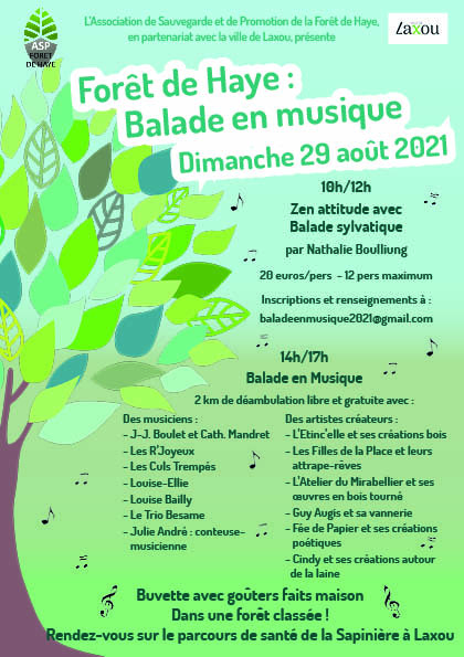 L’Association de Sauvegarde et de Promotion de la forêt de Haye organise, avec la ville de Laxou, une manifestation le dimanche 29.08.2021 au niveau de La Sapinière à Laxou.La journée se déroule en 2 temps :