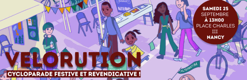 Rendez-vous à 13 heures sur la place Charles III pour une vélorution · cycloparade familiale et revendicative !