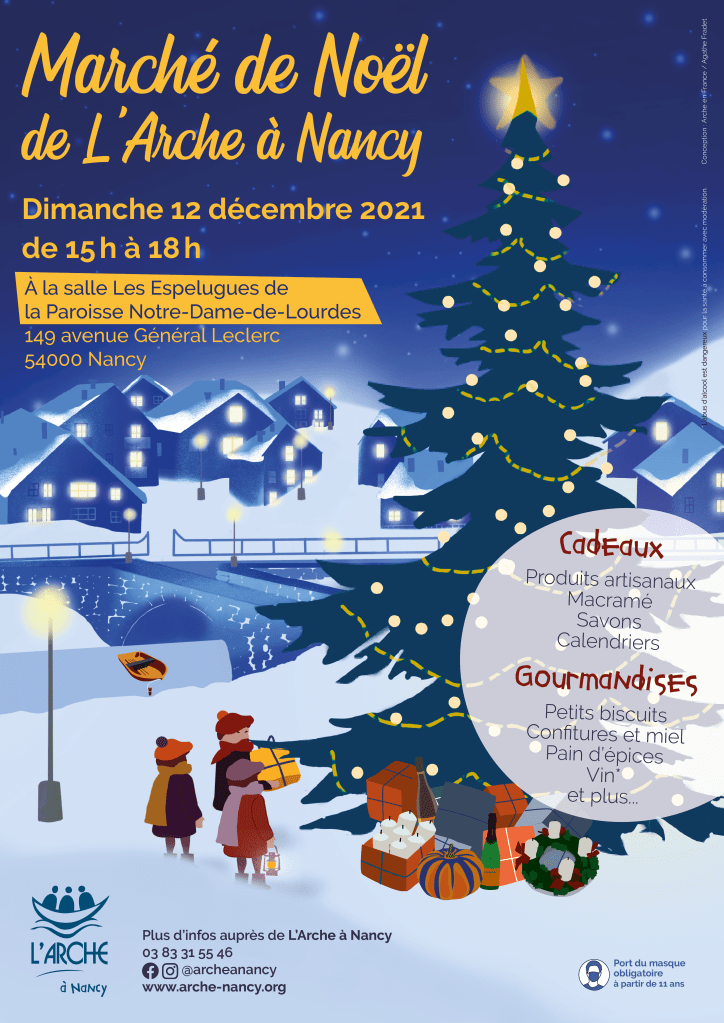 A l’approche des fêtes de fin d’année, l’Arche à Nancy organise un marché de Noël, le dimanche 12 décembre 2021 à la salle les Espelugues, paroisse Notre Dame de Lourdes, 149 avenue Général Leclerc.