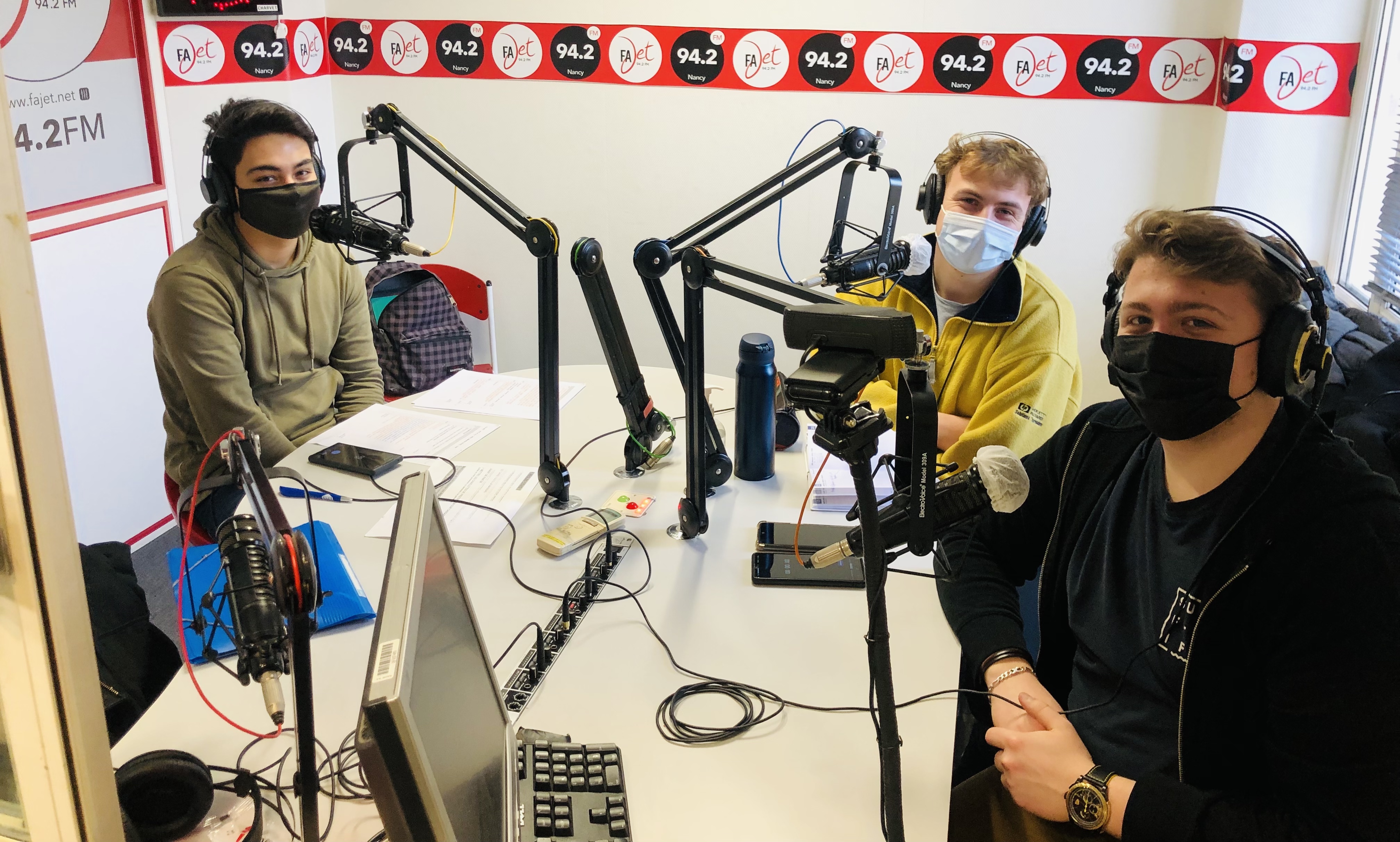 avec Alexis, étudiant, membre de AJ – Avec les Jeunes Nancy, Julien et Matthias, lycéens