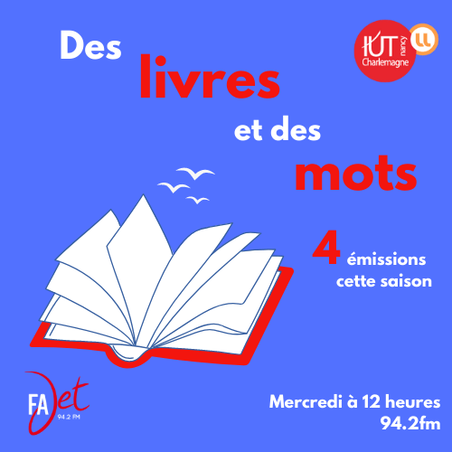 Voici la première émission Des Livres et Des Mots – Parler d’un auteur, parler avec un auteur, animée par des élèves de DUT Information-communication Option Métiers du Livre et du Patrimoine à l’IUT Nancy Charlemagne, dans le cadre de leur projet tutoré.