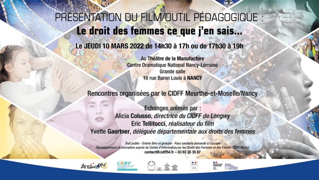 IV – LE DROIT DES FEMMES : CE QUE J’EN SAIS – Présentation du film/outil pédagogique réalisé par la Production « les Films d’Etés », et le CIDFF de Nancy, aux côtés de la Délégation Départementale aux Droits des Femmes et l’Université de Lorraine.