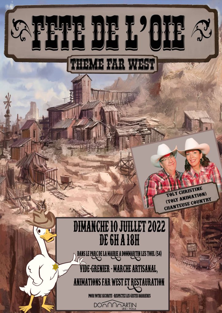 Après 2 années annulé à cause de la crise sanitaire, la fête de l’oie revient pour nous plonger dans une ambiance Far West. Musique, danse, taureau mécanique entre autres vous attendent.