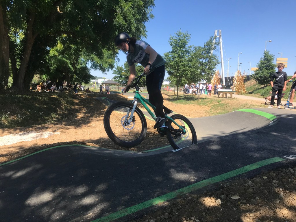 Les riders de Nancy seront ravis. Un pumptrack est installé juste derrière le skatepark du quartier, à l’esplanade Lucien Cuenot.
