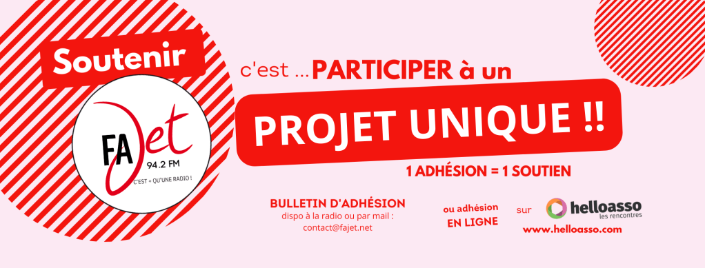 ➡️ Par Bulletin d’adhésion (disponibles directement à la radio ou par mail : contact@fajet.net