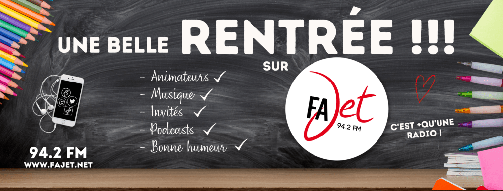 Radio Une belle rentrée sur Fajet ! Par radiofajet le 31/08/2022 Vos programmes et vos animateurs préférés reviennent, et des petits nouveaux arrivent… De quoi faire le plein de bonnes ondes Partager : Partager sur Facebook(ouvre dans une nouvelle fenêtre) Facebook Partager sur LinkedIn(ouvre dans une nouvelle fenêtre) LinkedIn Partager sur WhatsApp(ouvre dans une nouvelle fenêtre) WhatsApp Partager sur X(ouvre dans une nouvelle fenêtre) X Partager sur Telegram(ouvre dans une nouvelle fenêtre) Telegram Partager sur Threads(ouvre dans une nouvelle fenêtre) Threads Partager sur Mastodon(ouvre dans une nouvelle fenêtre) Mastodon Partager sur Bluesky(ouvre dans une nouvelle fenêtre) Bluesky J’aime chargement… Articles similaires Catégories :Radio