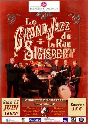 L’Orchestre « Le Grand Jazz de la Rue Sigisbert » donnera un CONCERT sur le thème des années 20, années fastes de la Broderie perlée de Lunéville, particulièrement consommatrices de nos broderies !