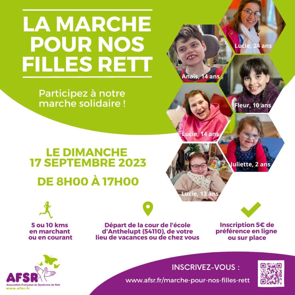 Infos et inscriptions ici : https://afsr.fr/marche-pour-nos-filles-rett/
