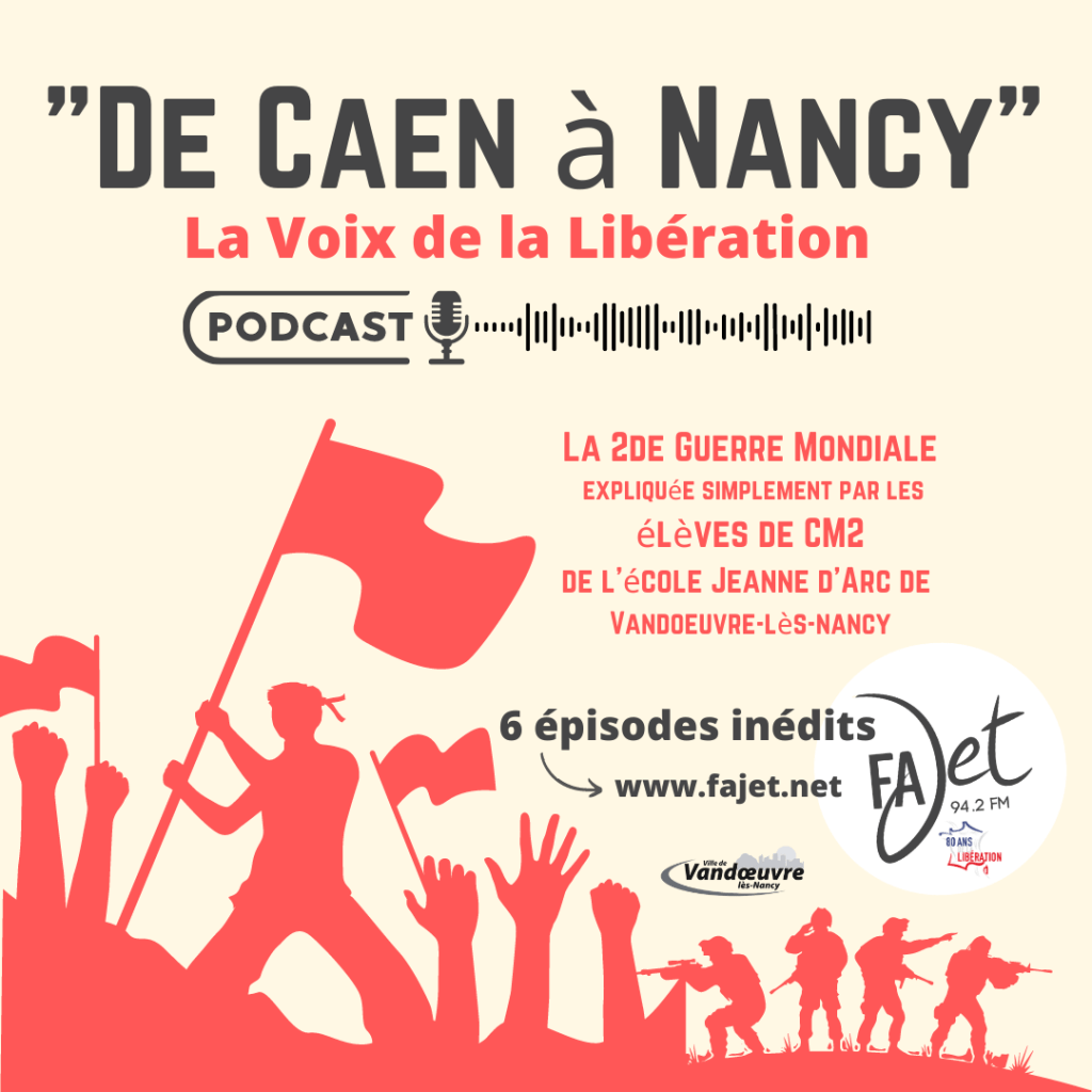 Le podcast de la 2de Guerre Mondiale expliquée simplement par les élèves de CM2 de l’école Jeanne d’Arc de Vandoeuvre-les-Nancy, du débarquement à la libération de Nancy et ses environs.