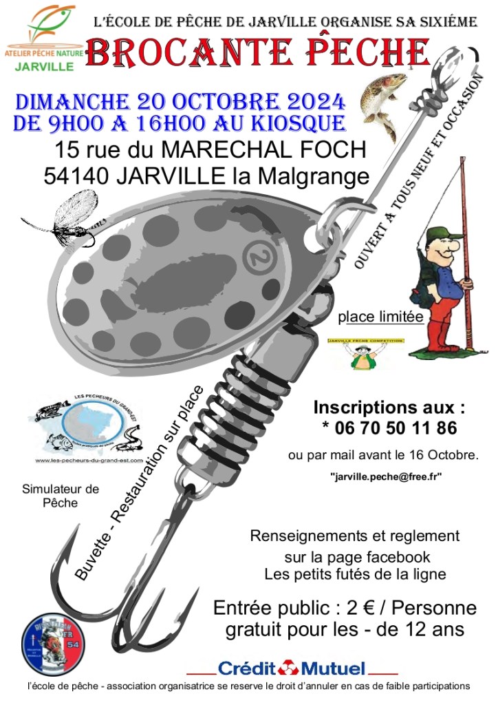 A noter, une brocante pêche dimanche 20 octobre de 9h à 16h au Kiosque, 15 rue du Maréchal Foch à Jarville la Malgrange.