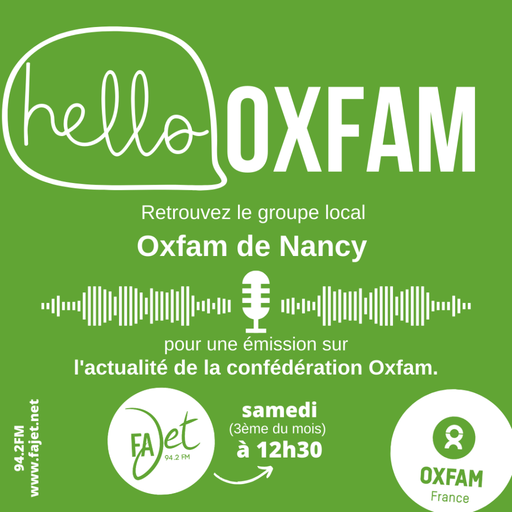 Retrouvez le groupe local Oxfam de Nancy pour une émission sur l’actualité de la confédération Oxfam.