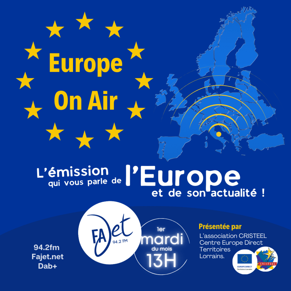 Europe on Air, l’émission qui vous parle d’Europe et de son actualité. Votre chronique est proposée par l’association Cristeel – Centre Europe Direct Lorraine Grand Est.