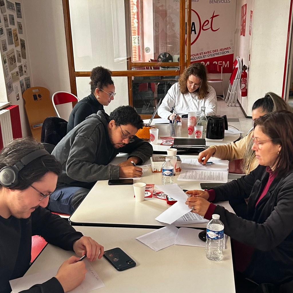 🎙 Retrouvez Vivian, Nassima, Khadija, Houria, David et Théo (salariés en transition professionnelle) et Virginie (accompagnatrice socioprofessionnelle) à l’animation.