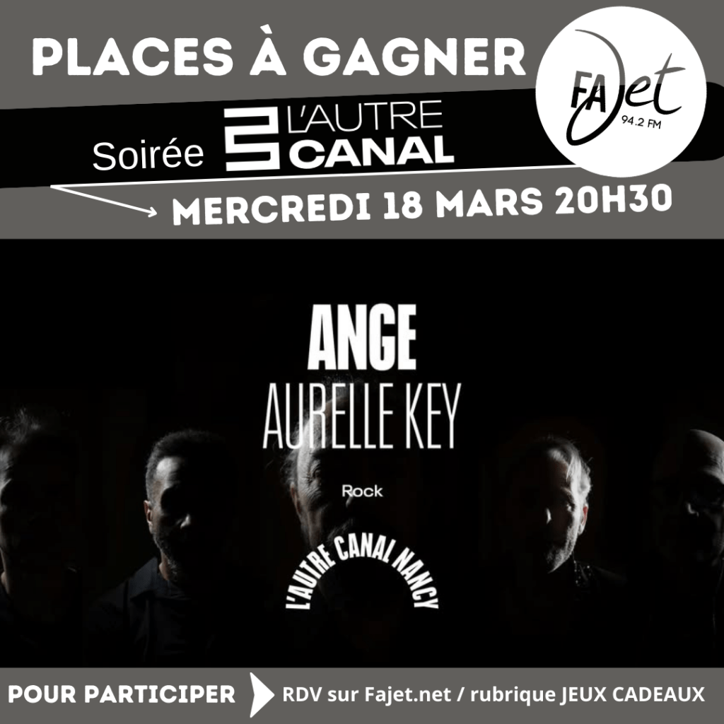 Le mercredi 18 mars à 20h30 aura lieu la soirée concert ANGE (avec Aurelle Key en première partie) à L’Autre Canal.