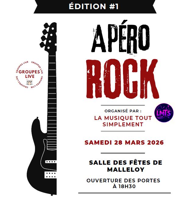 La salle des fêtes de Malleloy accueillera le samedi 28 mars 2026 la première édition de l’Apéro Rock, une soirée musicale organisée par l’association La Musique Tout Simplement, qui porte l’école de musique locale.