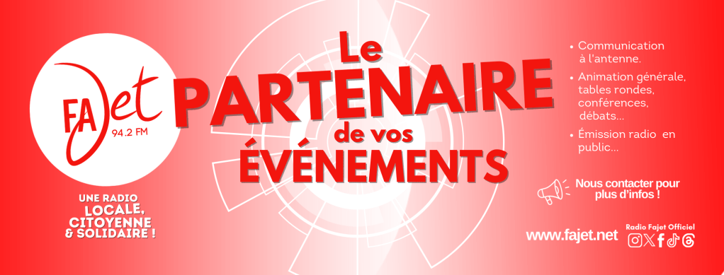 Diffusion en direct* ou en différé sur l’antenne de Fajet. (*sous réserve d’une bonne connexion internet)