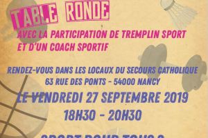Le secours catholique Young Caritas de Meuthe et Moselle organise vendredi 27 septembre 2019 une table ronde autour du sport de la santé et du bien-être