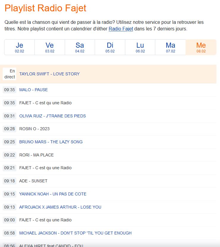 > Retrouve l’ historique des titres diffusés (lien externe)