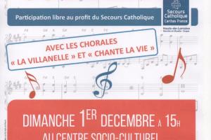 Le Secours Catholique du Bassin de Pompey organise ce dimanche 1er décembre à 15h un concert avec entrée libre.